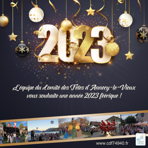 BONNE ANNÉE 2023 ! ActualitésPar Admin-comite2 janvier 2023Le comité des fêtes d’Annecy-le-Vieux vous souhaite une année 2023 féerique !