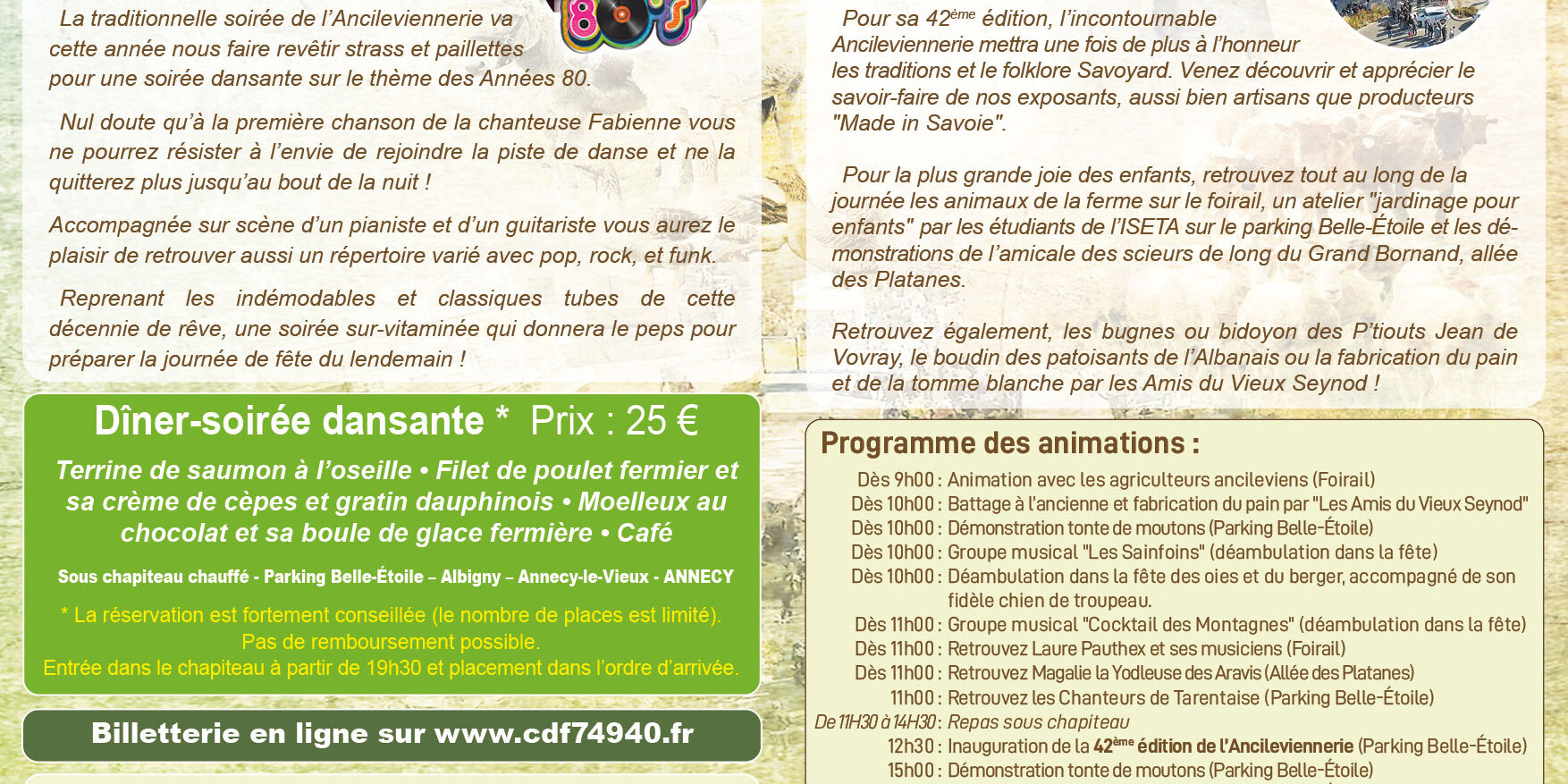 LE PROGRAMME DE L’ANCILEVIENNERIE 2023