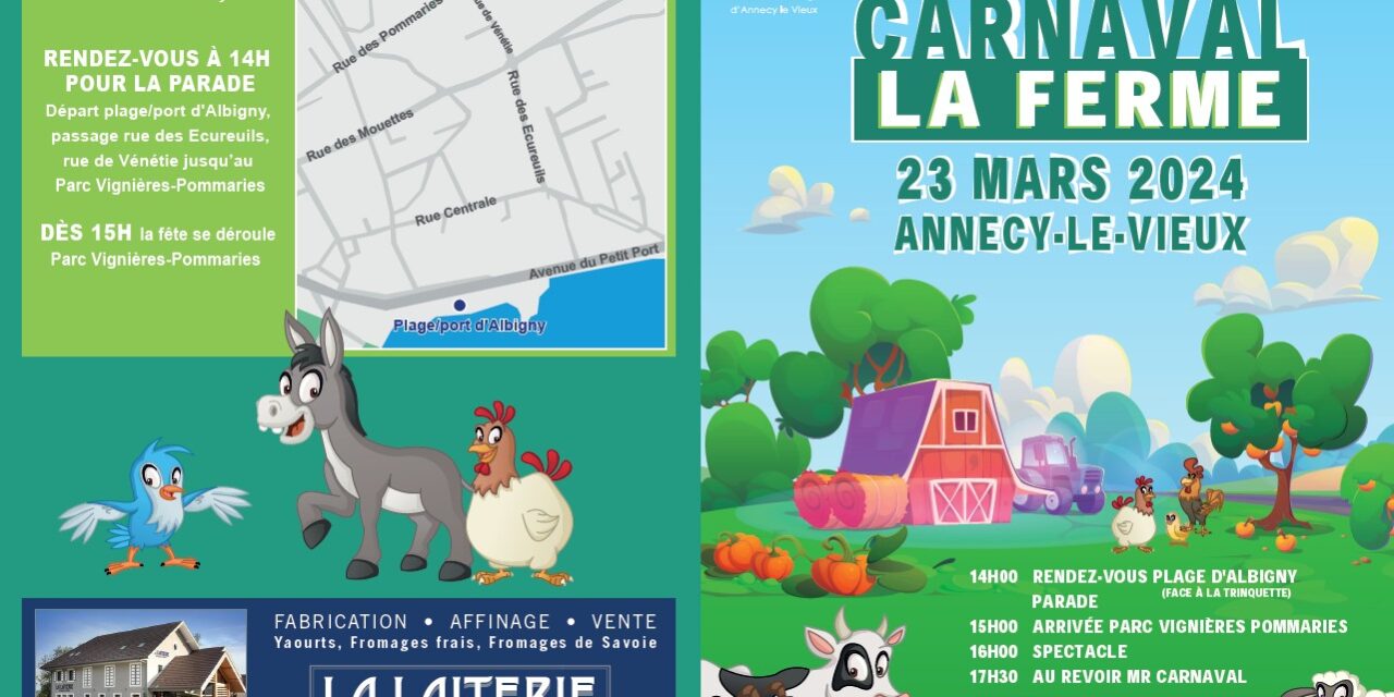 Découvrez le programme du Carnaval sur le thème de « LA FERME » à retrouver samedi 23 Mars 2024 !