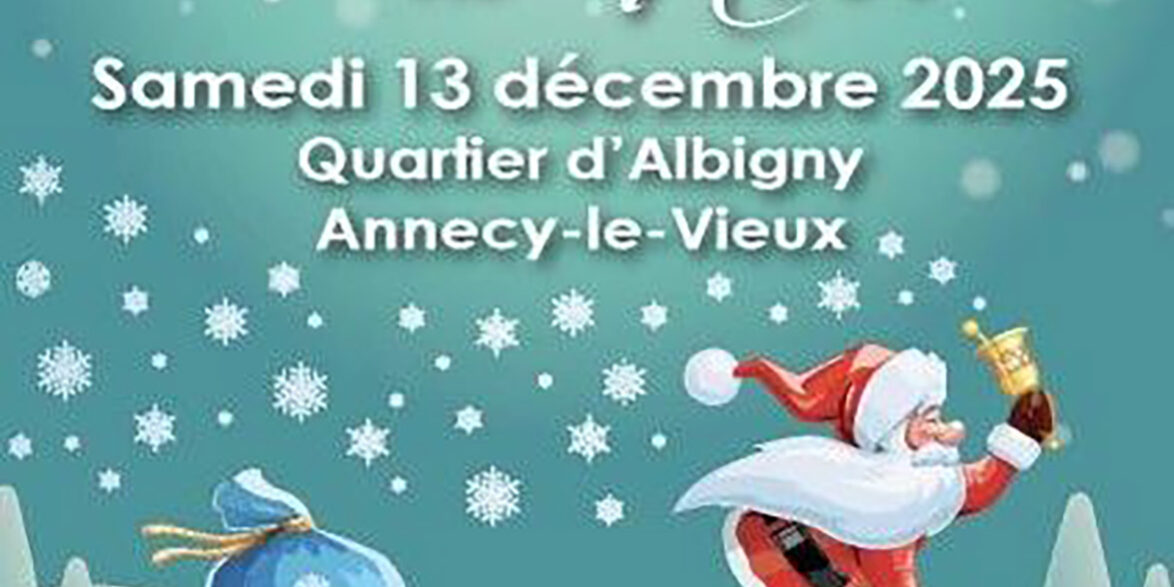 Découvrez l’affiche de la Féerie de Noël qui aura lieu le samedi 13 Décembre 2025 au cœur du quartier d’Albigny à Annecy-le-Vieux !